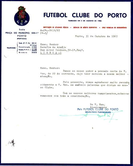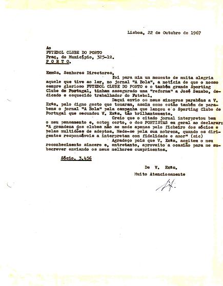 José Szabo, que foi um grande e histórico treinador do FCP e do SCP vive momentos difíceis. As Direcções de ambos os Clubes num acto de profunda generosidade unem os seus esforços para lhe minorar as dificuldades. Serafim de Araújo, sempre atento ao “seu” FCP, não deixa passar a oportunidade de enaltecer o bondoso acto da Direcção do Clube, também ele a passar por uma crise financeira, então presidido por Afonso Pinto de Magalhães. |