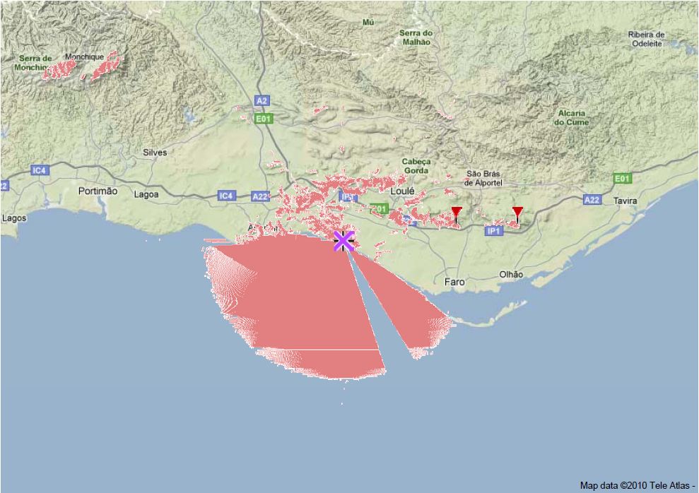 Major land obstacles: Guilhim @ 17km 81° (true Bearing) and Monte Figo @ 26km 84° (true Bearing)